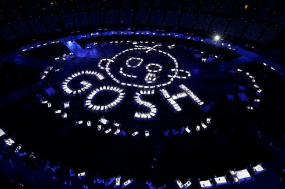 Artists perform during the Opening Ceremony of the London 2012 Olympic Games at the Olympic Stadium on July 27, 2012 in London, England. (Photo by Morry Gash – IOPP Pool /Getty Images)