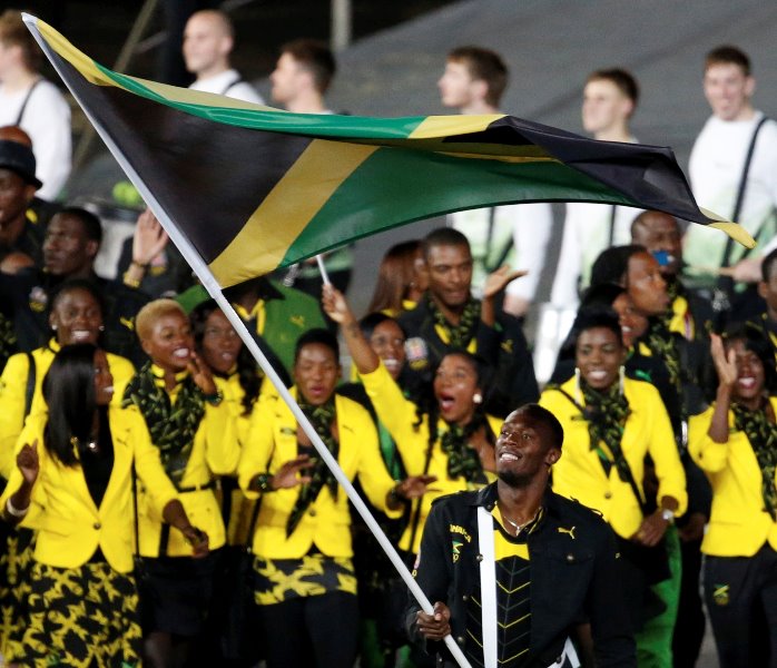 Jamaican contingent Previous Next Published July 28, 2012 at 698 × 600 in Jamaica and the London 2012 Olympics: Usain Bolt, Photo highlights from the 2012 Olympic Ceremony Usain Bolt and Jamaican Olympic Athletes at the 2012 Olympics