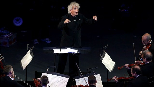 Sir Simon Rattle at olympics Previous Next Published July 28, 2012 at 638 × 359 in Jamaica and the London 2012 Olympics: Usain Bolt, Photo highlights from the 2012 Olympic Ceremony Sir Simon Rattle conducts the London Symphony Orchestra at olympics