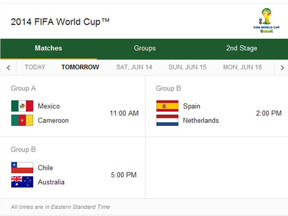 Match Schedule for Friday, June 13, 20141 Previous Next Published June 12, 2014 at 960 × 720 in 2014 FIFA World Cup – Match Schedule for June 12 – 26, 2014