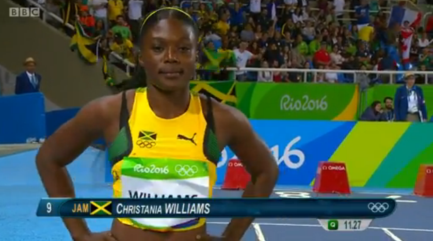 CHRISTANIA WILLIAMS in semi finals 100m Previous Next Published August 13, 2016 at 893 × 498 in Rio 2016 Olympics: Results For Shelly Ann Fraser Pryce, Elaine Thompson and Christania Williams In The Women’s 100m Semi-Finals