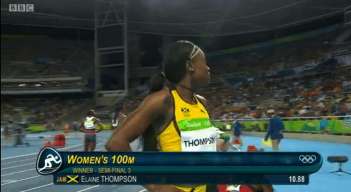 elaine thompson in semi finals 100m Previous Next Published August 13, 2016 at 893 × 490 in Rio 2016 Olympics: Results For Shelly Ann Fraser Pryce, Elaine Thompson and Christania Williams In The Women’s 100m Semi-Finals elaine thompson in semi finals 100m