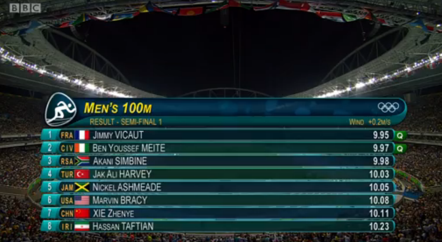 Nickel Ashmeade in the mens 100m semi finals rio Previous Next Published August 14, 2016 at 886 × 487 in Rio 2016 Olympics: Results Of The Men’s 100m Semi-Finals with Usain Bolt, Yohan Blake and Nickel Ashmeade Nickel Ashmeade in the mens 100m semi finals rio