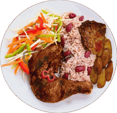 Jamaican Jerk Chicken Previous Next Published June 23, 2012 at 987 × 954 in Jamaican Food / Cuisine: Lick yuh lips and ten finga dem Jamaican Jerk Chicken, with vegetables, rice and peas, and plantains Jamaican Jerk Chicken, with vegetables, rice and peas, and plantains